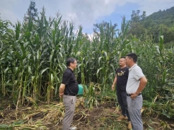 2025年8月21日,贵州省草业研究所所长陈才俊,国家牧草产业技术体系黔南综合试验站专家赵明坤副研究员,省牧草产业技术体系专家陈光吉副研究员,以及桐梓县省科技特派员王子苑等专家团队,赴桐梓县茅石镇中关村全株玉米错季机械化加工创新技术应用示范点进行现场考察与指导。在示范点,专家们详细了解了全株青贮玉米的种植、收割、青贮等全过程,对机械化收割设备的使用效率、青贮饲料的品质以及存储条件进行了深入评估。
